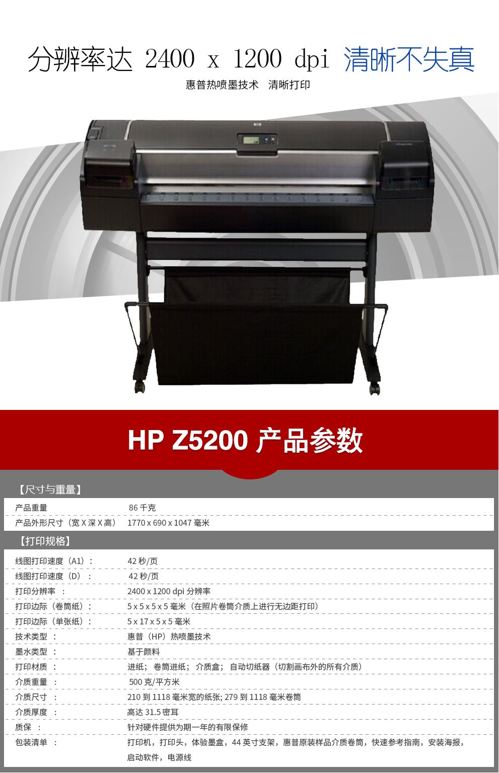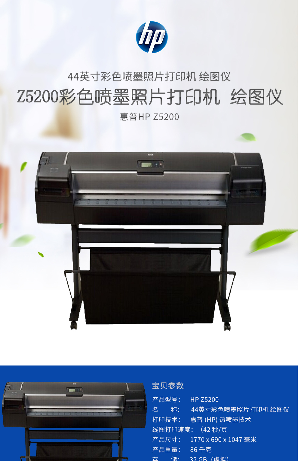 惠普(HP)5200PSB0幅面(44英寸)彩色大幅面CAD大幅面工程图打印机绘图仪地图打印 自营