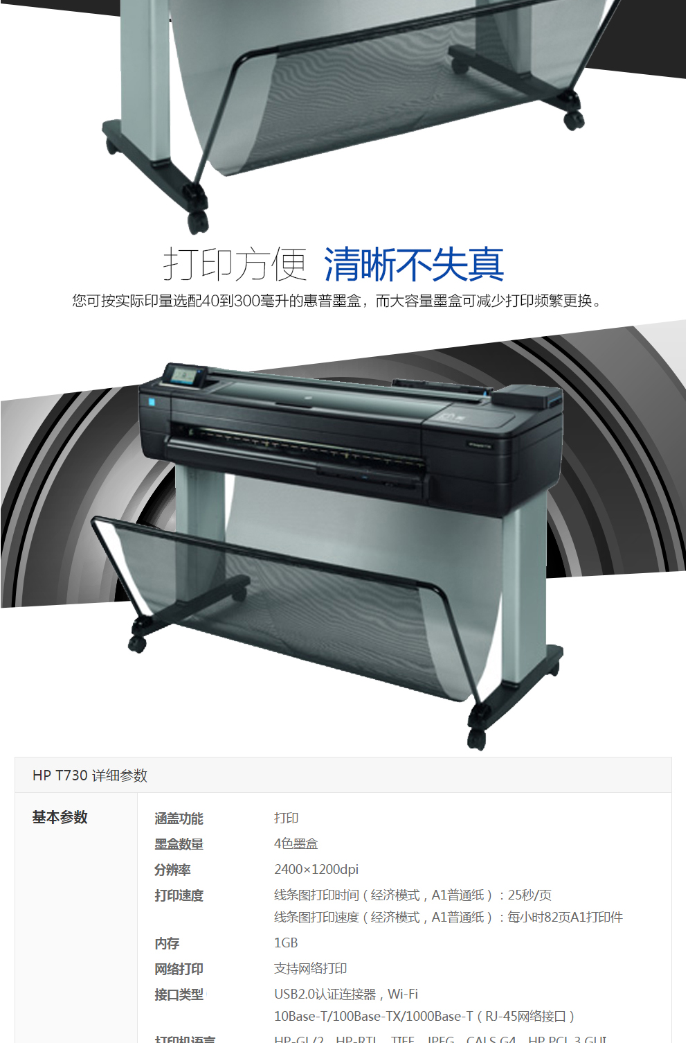 惠普(HP)HPDesignJetT730A0大幅面大型打印机(36英寸)打印机绘图仪(含免费上门安装一年上门服务)