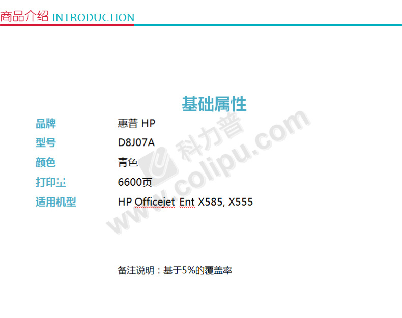 惠普HP页宽打印机墨盒D8J07A980A青色CLP页宽打印机墨盒 自营