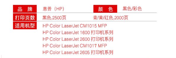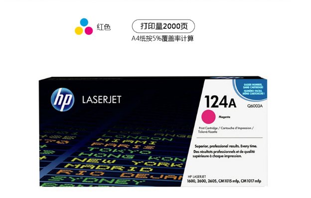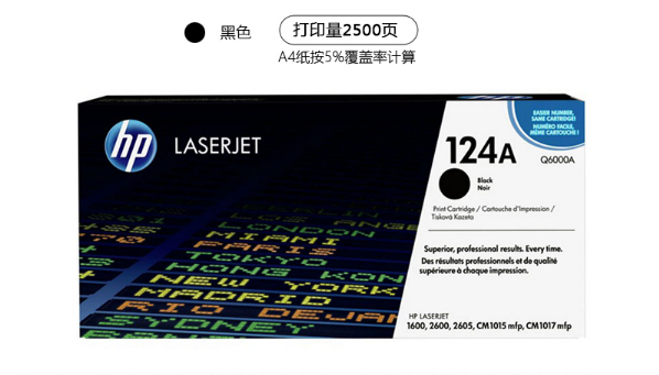 惠普(HP)124a硒鼓Q6000Ahp1600260026051015打印机墨粉盒Q6000-3A四色一套 自营