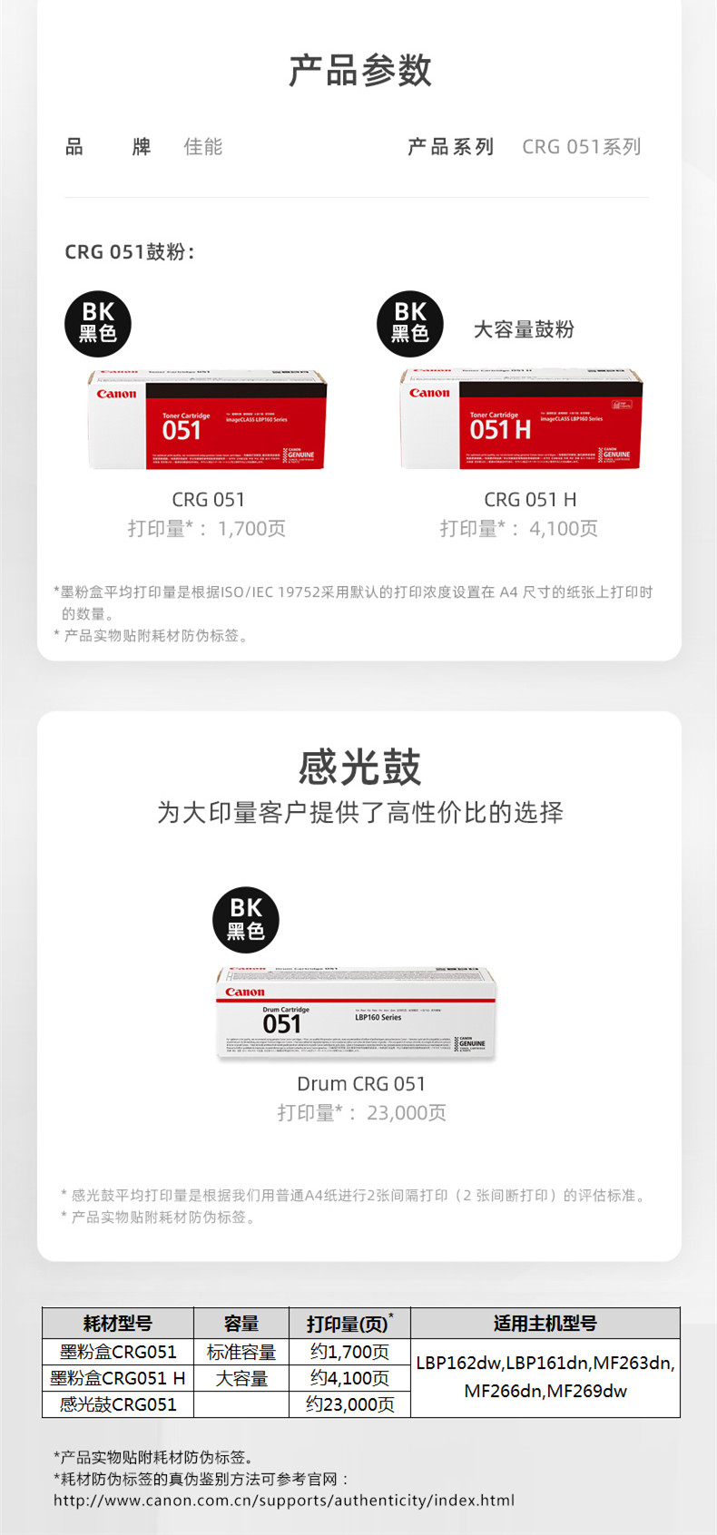 佳能(Canon)CRG051黑色墨粉盒标准容量(适用MF269dw/266dn/LBP162dw) 自营