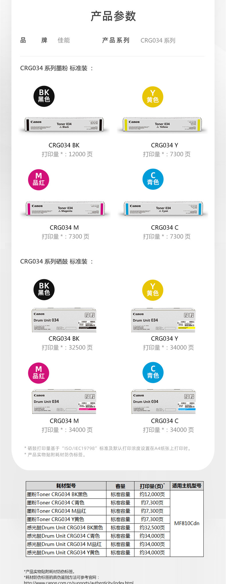 佳能(Canon)TonerCRG034C青色墨粉盒(适用MF810Cdn) 自营
