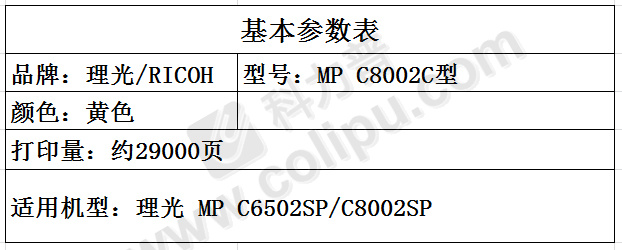 理光RICOH复印机碳粉盒MPC8002C黄色CLP复印机碳粉盒 自营