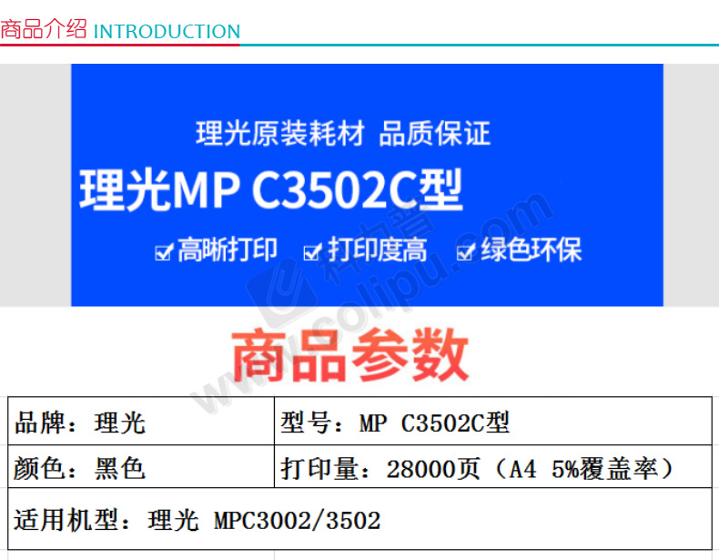 理光RICOH复印机碳粉盒MPC6003C黑色CLP复印机碳粉盒