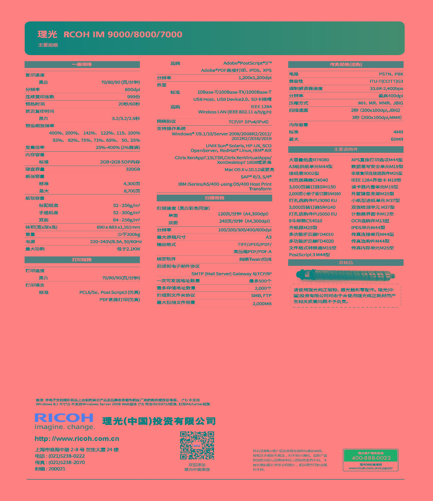 理光A3黑白高速数码复合机IM7000复印机 自营