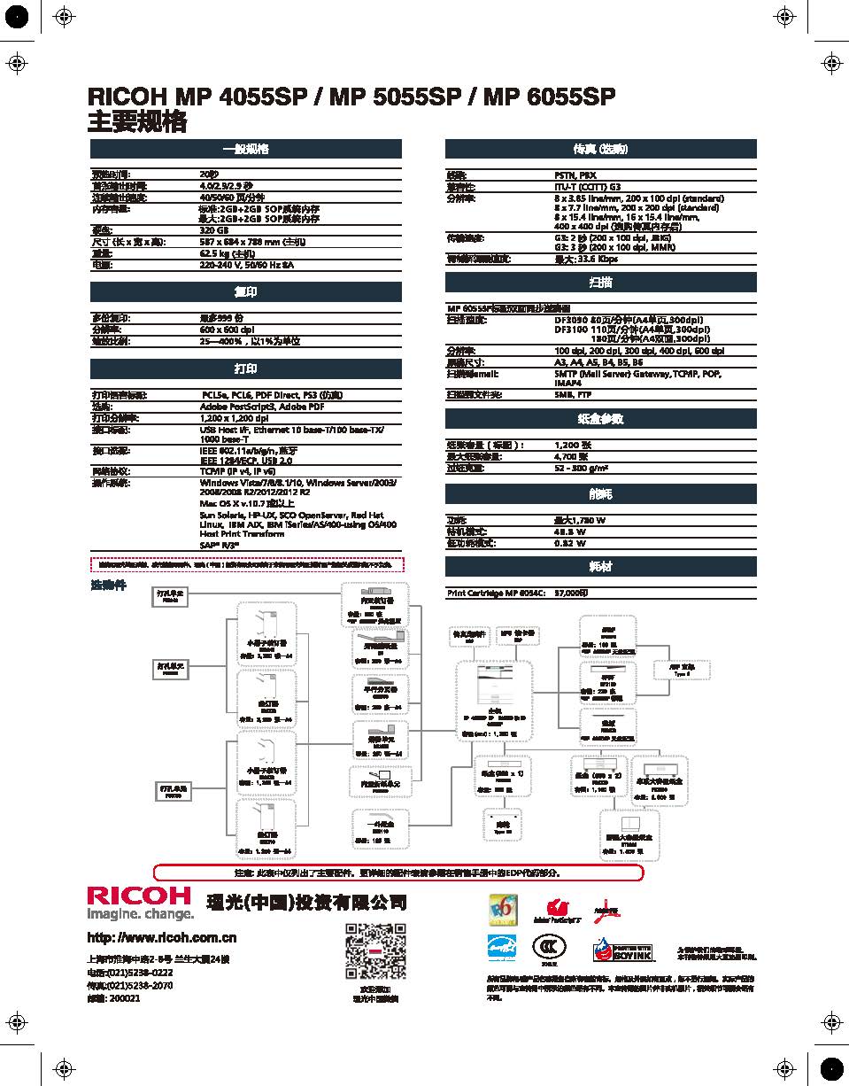 理光A3黑白数码复合机MP4055SP复印机 自营