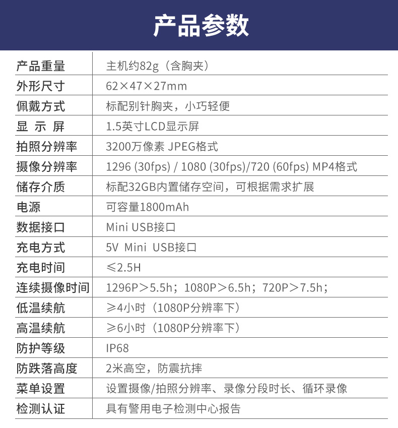 警翼F1执法记录仪3200万高清红外夜视32G版双电