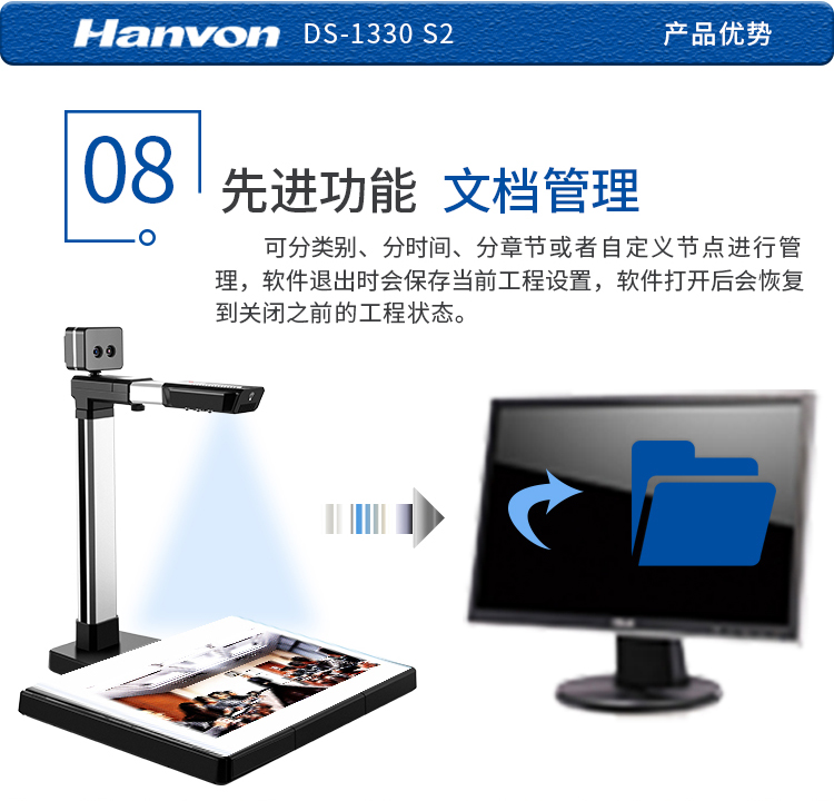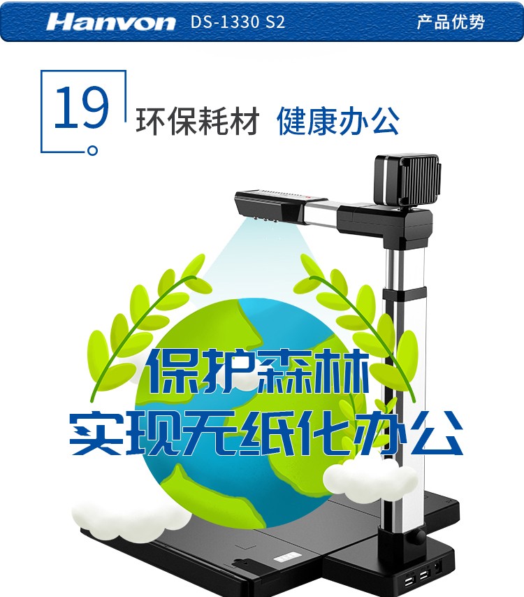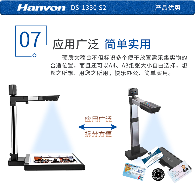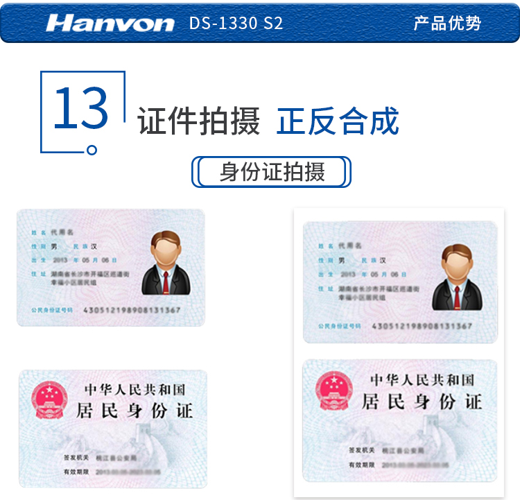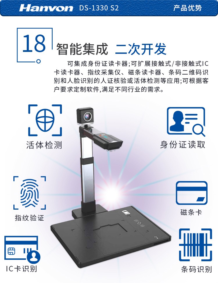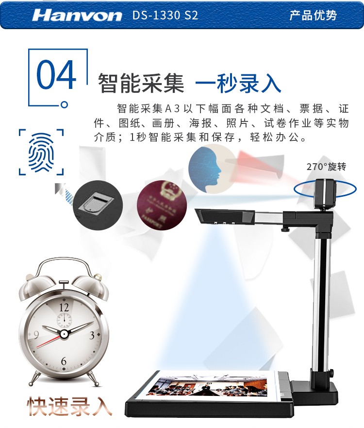 汉王(Hanvon)DS-1330S2智能高拍仪扫描仪人证比对1500万像素A3幅面双头带二代证读卡器(A3) 自营