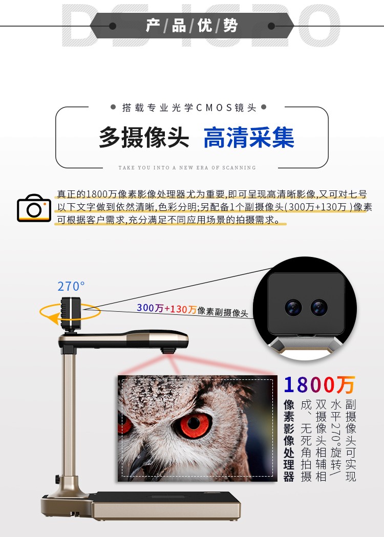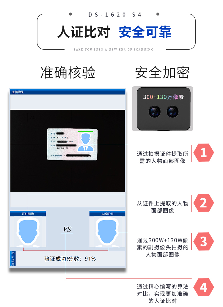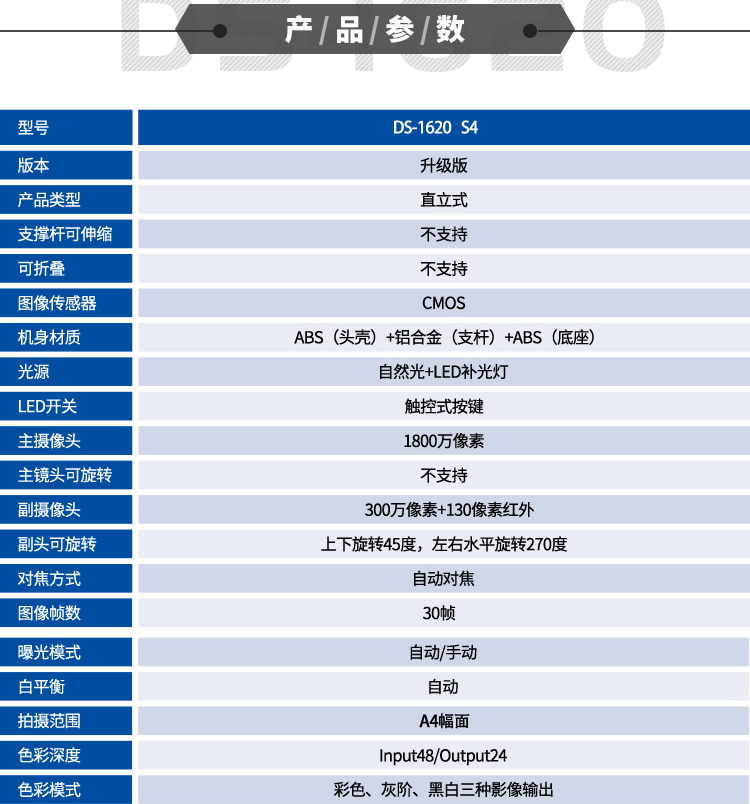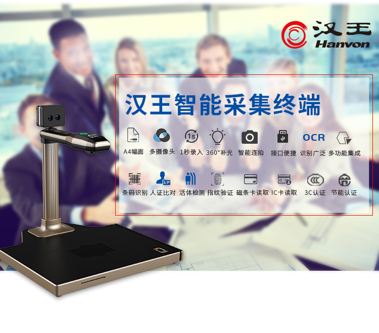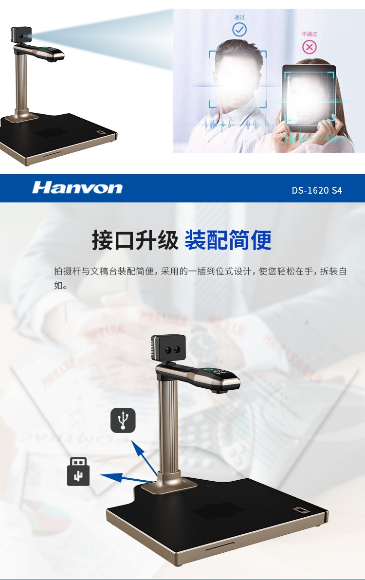 汉王(Hanvon)DS-1620S4智能高拍仪扫描仪人证比对1800万高清摄像头A4幅面双目活体检测(A4幅面) 自营