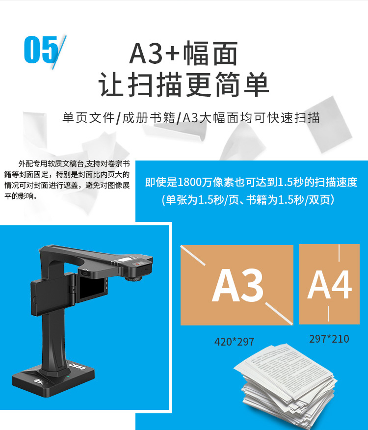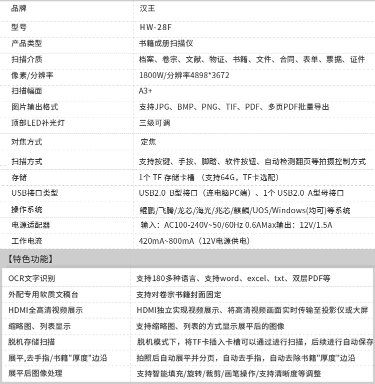 汉王(Hanvon)HW-28F书籍成册扫描仪高拍仪1800万像素带屏幕A3幅面远程教学网课直播(A3) 自营