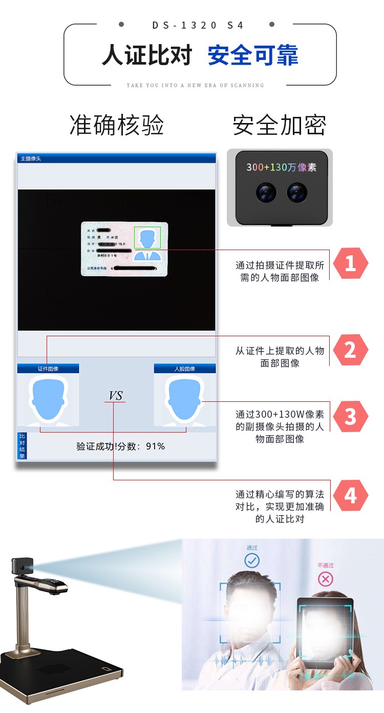 汉王(Hanvon)DS-1320S4智能高拍仪扫描仪人证比对1500万高清摄像头A4幅面双目活体检测(A4幅面) 自营