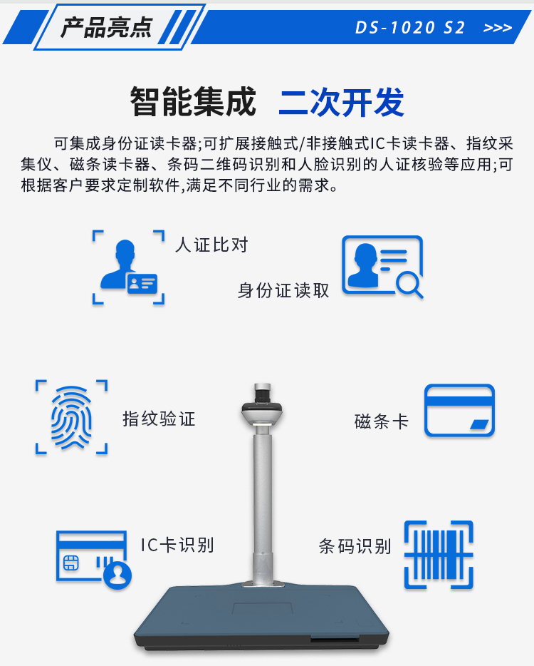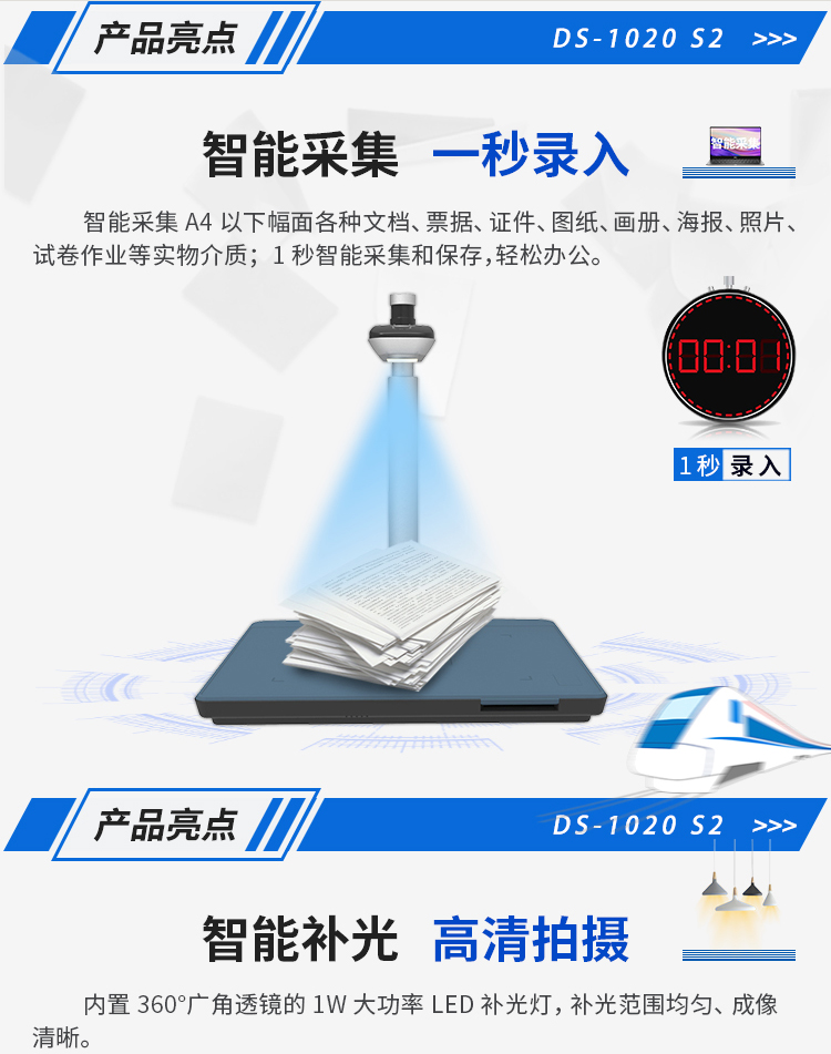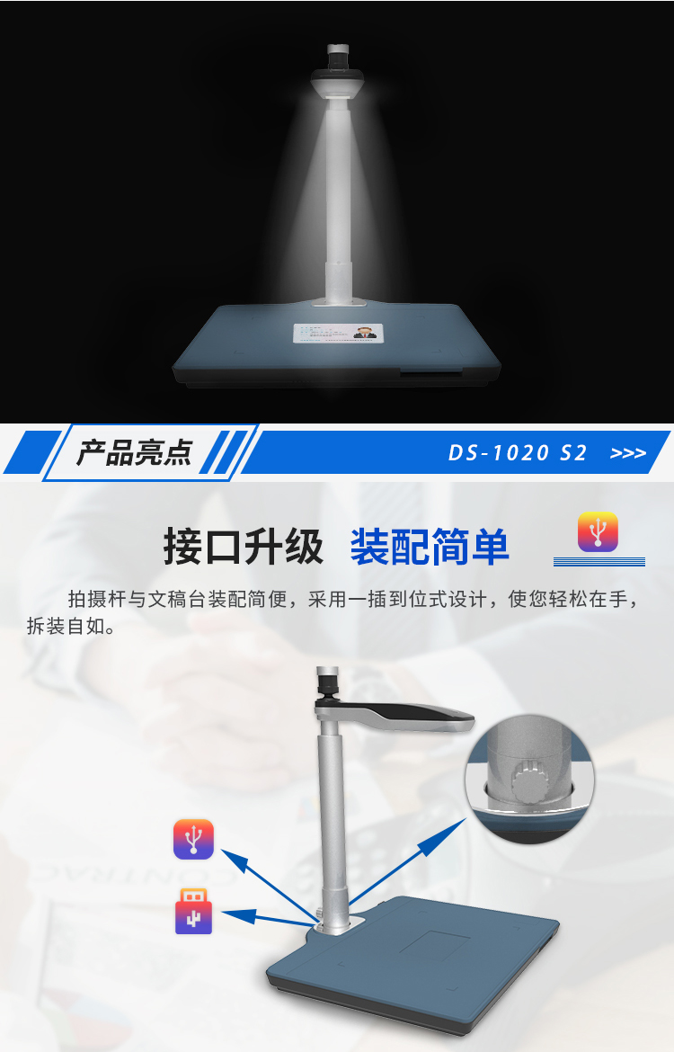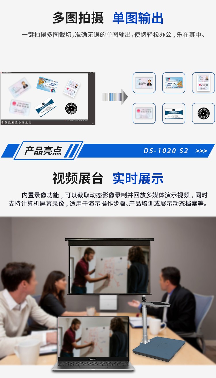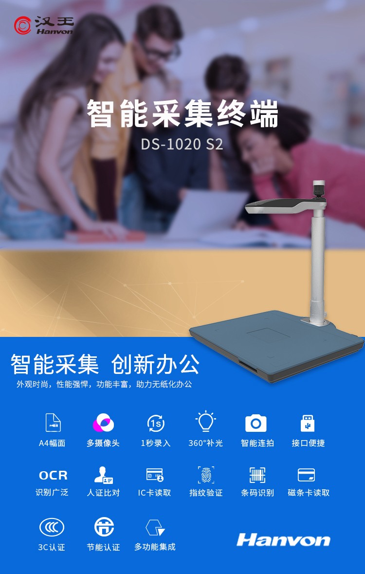汉王(Hanvon)DS-1020S2智能高拍仪扫描仪人证比对1000万高清像素A4幅面双摄像头
